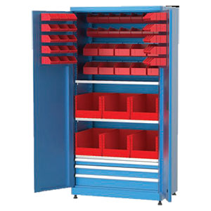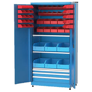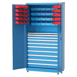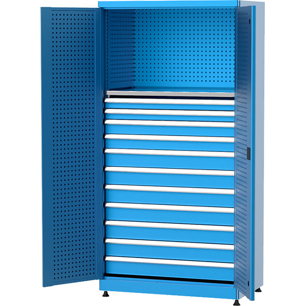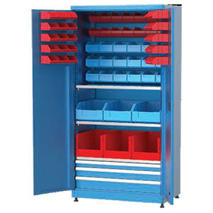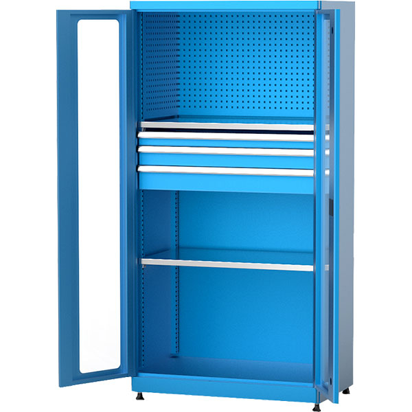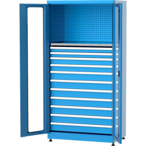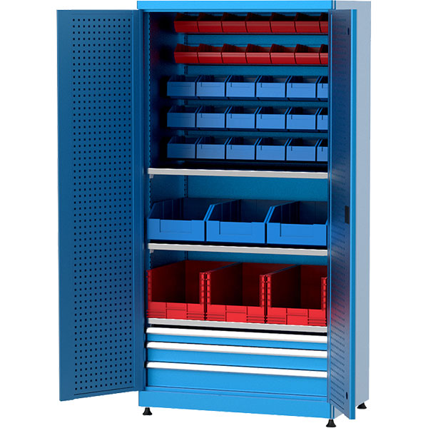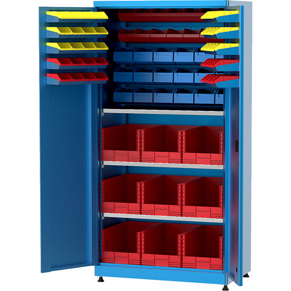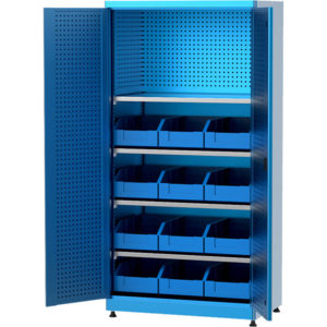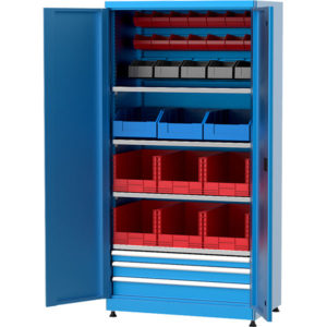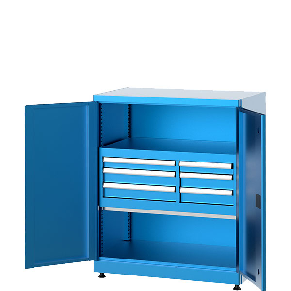 Industrial cabinets are suitable for storage and stacking in factories, workshops and industrial plants. Welded, robust steel 1,20 mm sheet construction and painted with electrostatic powder paint.